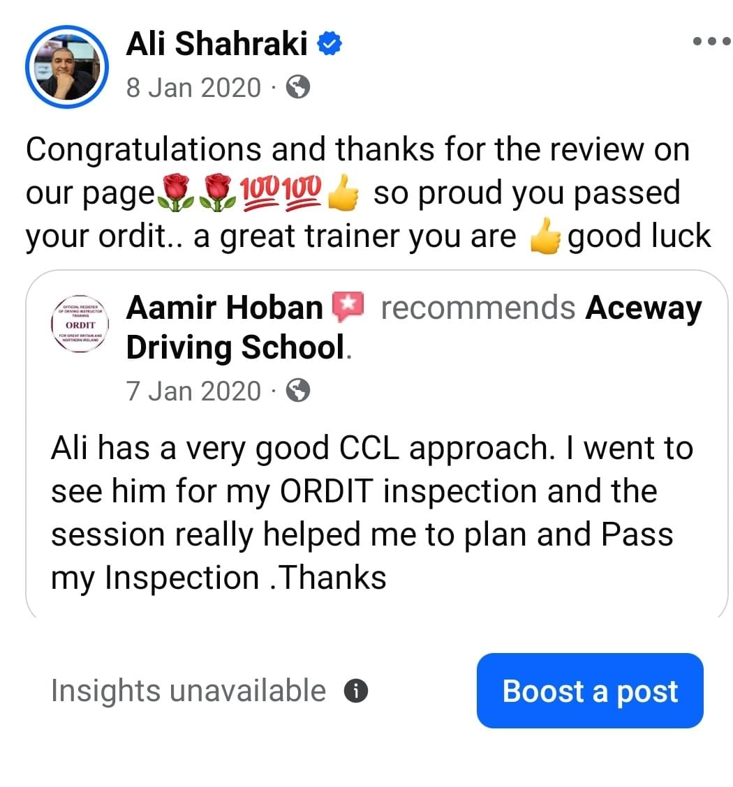 DVSA Graded A Instructor: Ali is DVSA Graded A, the highest grade achievable by the Driver and Vehicle Standards Agency (DVSA). This prestigious rating highlights his exceptional teaching standards, and his commitment to providing the highest quality of instruction. Prior to the DVSA grading system, Ali was a Grade 6 instructor, a rare achievement in the industry before grading system that showcases his long-standing excellence in the field.